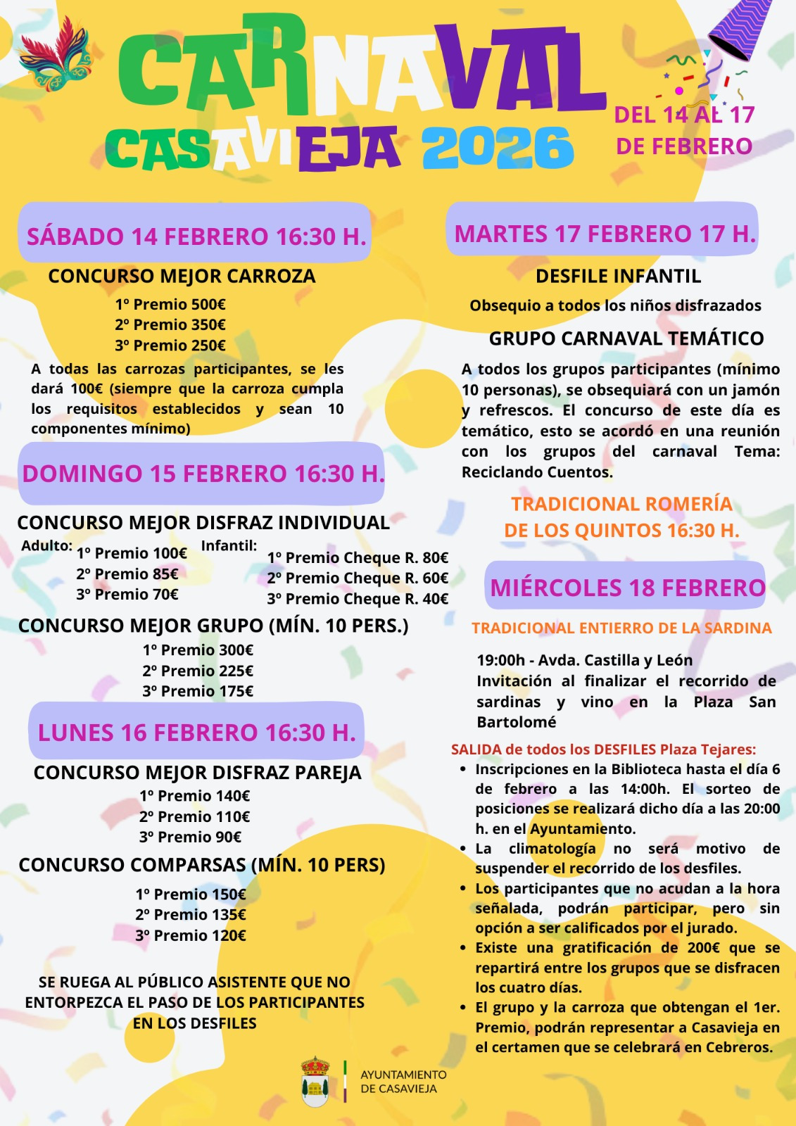 Carnaval Casavieja 2026 Del viernes 13 de febrero al miércoles 18 de febrero de 2026