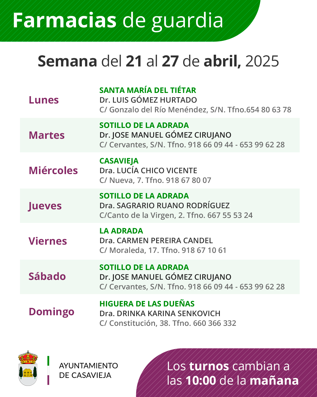En esta página podrás consultar las farmacias de guardia en la Zona de Casavieja / Sotillo de la Adrada