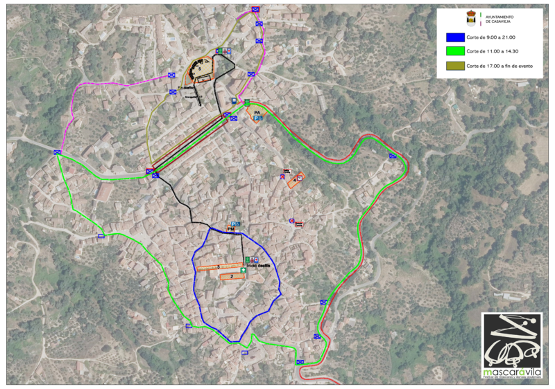 Con motivo de la celebración de Mascarávila, que tendrá lugar el próximo sábado 18 de abril, compartimos el plano informativo con los cortes de tráfico previstos en el municipio, con el fin de facilitar la organización y el desarrollo del evento.