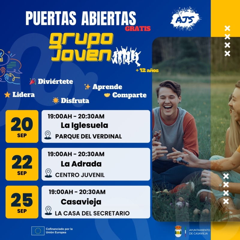 Grupo joven (+12 años): 19:00 a 20:30 h