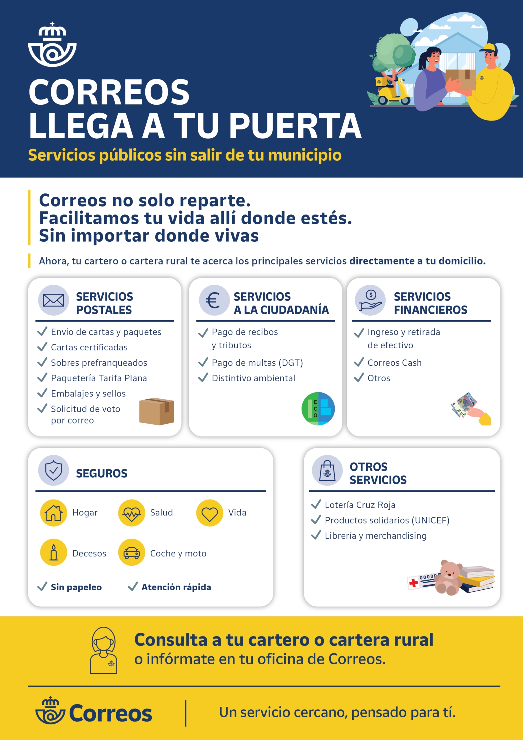 Para más información sobre estos servicios, se puede consultar directamente con el cartero o cartera rural.