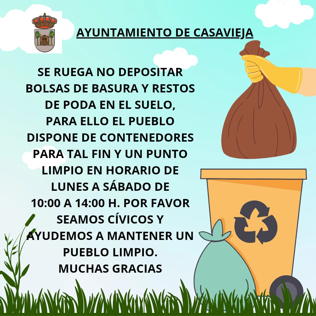 Si tienen dificultad para el transporte de enseres o residuos no voluminosos, póngase en contacto en el n.º de teléfono 670 843 134 o 689 968 892 y le indicarán día y hora de recogida.